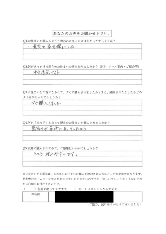 何が決め手となって弊社にて中古住宅を購入(または売却)されたのでしょう?
